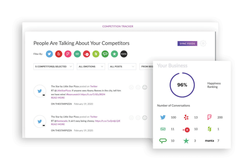 Give your clients a competitive advantage by empowering them to track what is being said about their competitors. The Competition Tracker makes it easy to gain insights and knowledge that can lead to new customers and avoid the mistakes others are making in the markets that compete with your customers.