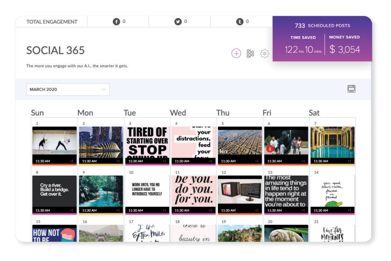Social 365 let's you and your clients easily curate, customize and schedule Social Media posts for up to a full year in minutes. Choose content categories and RSS feeds that are relevant to your business and audience. Determine your desired frequency of posts and instantly populate your content calendar. Easily modify, add or cancel posts. It's social media on steroids for your client's, regardless of their level of expertise.